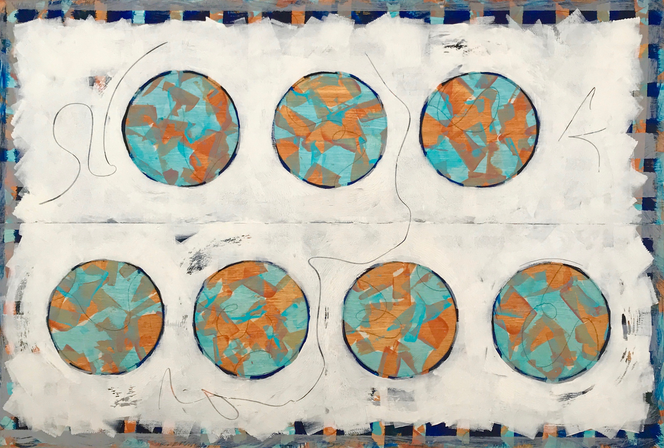 “the 7 seas” is from my portal of interests and consists of oil, acrylic, graphite. inspired from living on a boat in the florida keys and our love and concern for all the seas in the world.